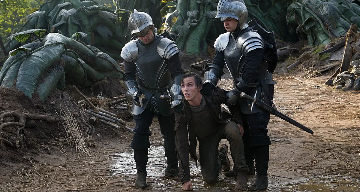 Z oryginalnej fabuły pozostają Jaś, a właściwie Jack (Nicholas Hoult), oraz fasola (w tej roli – animacja komputerowa). Zamiast jednego olbrzyma mamy ich całą armię, a wszyscy szpetni, okrutni, o oczach nienawistnych, sercach przepełnionych okrucieństwem i paznokciach błagających o manicure. Młody bohater nie wspina się po łodydze rośliny fasolowatej na magicznym nawozie ot tak, z ciekawości – niefartownie fasola postanowiła wykiełkować podczas niespodziewanej wizyty Isabelle (Eleanor Tomlinson), miejscowej księżniczki i poszukiwaczki przygód in spe, porywając zaplątaną w pędy niewiastę wprost do podniebnej krainy olbrzymów.